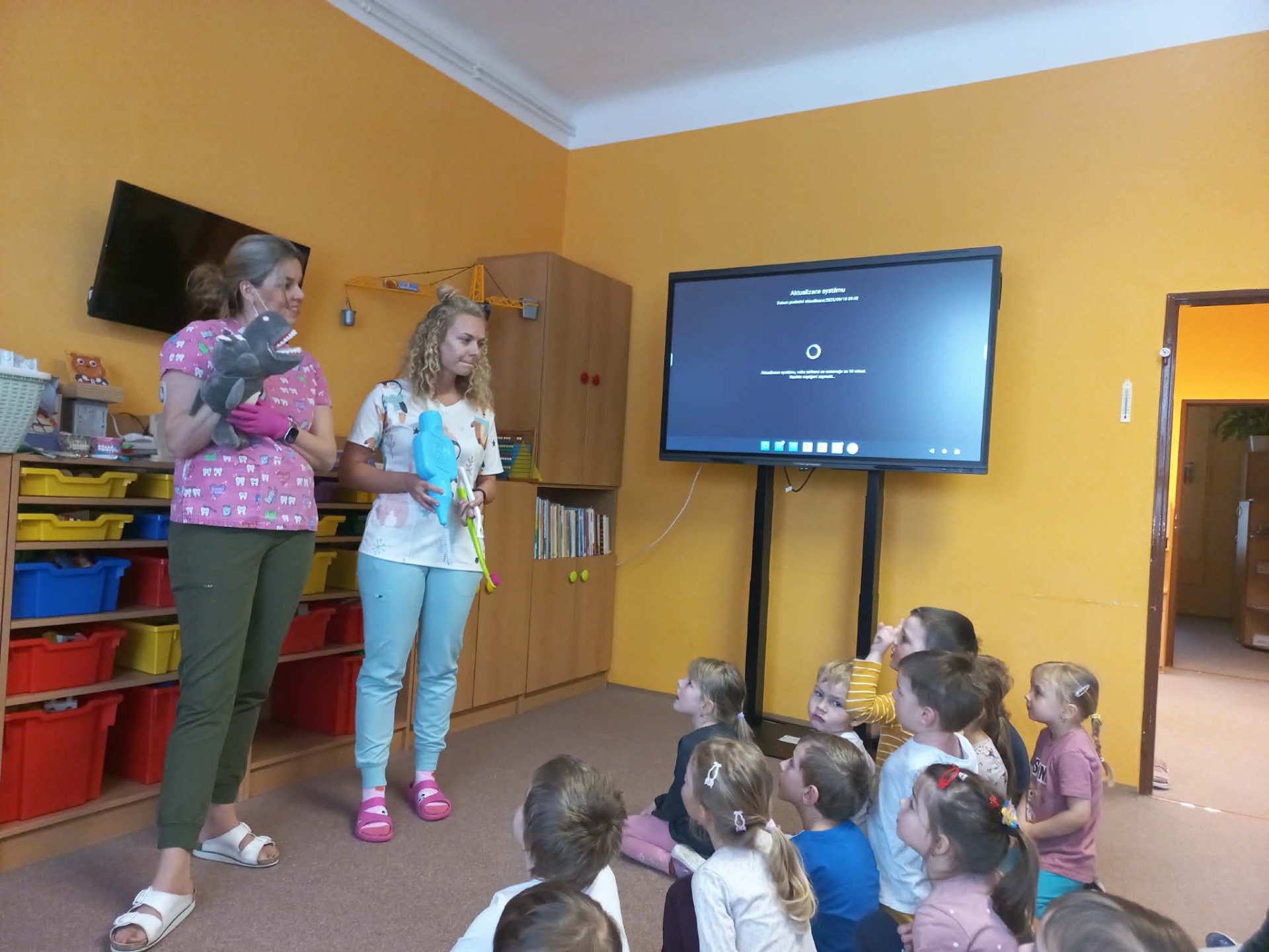 Ve středu 14.1.2026 jsme měli DEN S DENTÁLNÍ HYGIENISTKOU. Děti se hravou formou dozvěděli co zoubkům škodí, jak a čím si mají zoubky správně čistit.