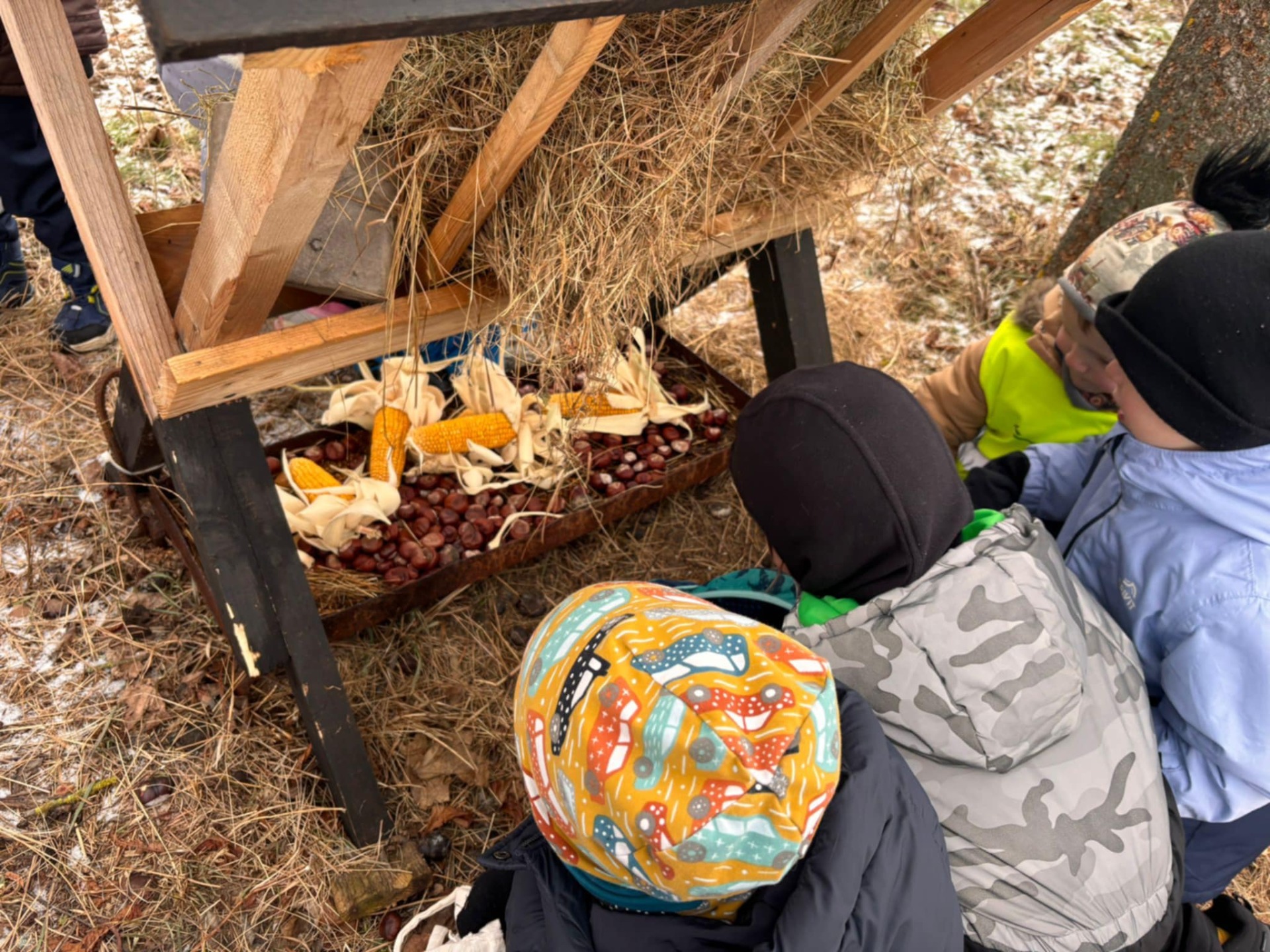 V úterý 3. 2. 2026 jsme se s dětmi vypravili na vycházku ke krmelci, kde děti připravily hostinu pro zvířátka.